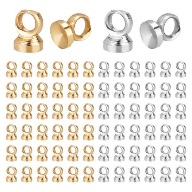 PH PandaHall 約200個セット ヒートン ヒートンキャップ ビーズキャップ 2色 ピンなし カン付き イヤリングパーツ レジンアクセサリー 丸ヒートン 接合金具 アクセサリーパーツ チャーム取付カバー ペンダント接続金具 ハンドメイド 手芸用品