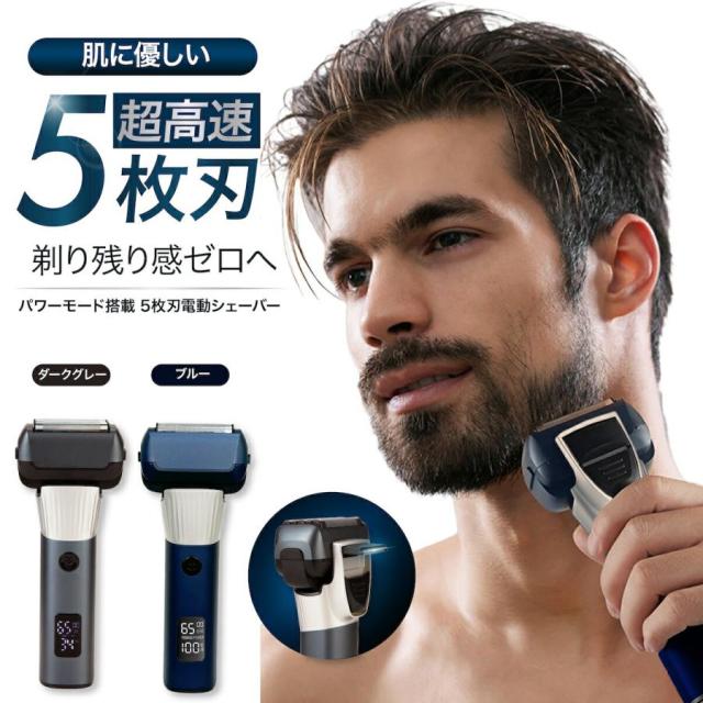 髭剃り シェーバー メンズシェーバー 電気シェーバー 電気カミソリ パワーモード搭載5枚刃 電動シェーバー 電気剃刀 ひげそり 電動 丸洗い可能 深剃り 充電式