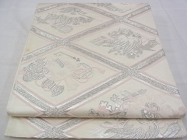 平和屋着物■六通柄袋帯 唐織 天井宝尽くし 銀糸 逸品 n-kv2293