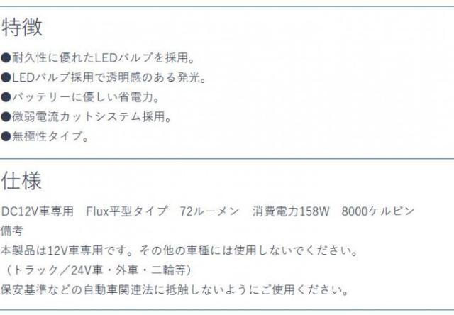 商品詳細:耐久性に優れたLEDバルブを採用しています。LEDバルブ採用で透明感のある発光が特徴です。バッテリーに優しい省電力です。微弱電流カットシステムを採用しています。無極性タイプです。 生産国:台湾 素材・材質:PC樹脂 仕様:形状:3種類ハーネス付T10/T10×31/G14