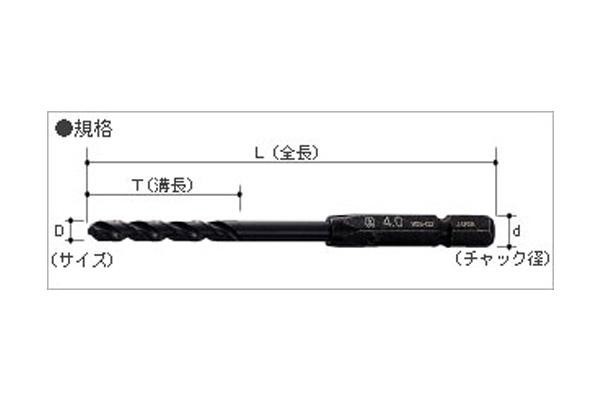 | サイズ | サイズ(D):3.7mm、全長(L):103mm、溝長(T):34mm、チャック径(d):6角軸6.35mm 個装サイズ:4.0×18.0×0.8cm |