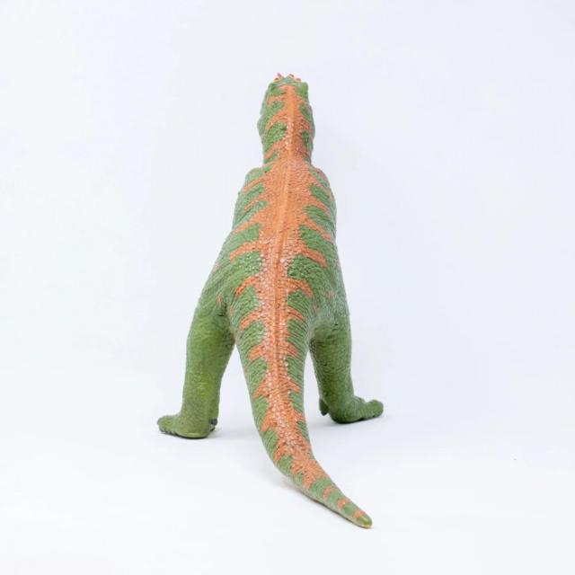 商品詳細:白亜紀後期の南米の覇者ギガノトサウルスのビニール製フィギュアです。近年発見された新しい恐竜で、若い恐竜ファンに特に人気があります。小さなお子様が触れても安全な素材を使用しているため、リビングや子ども部屋に安心して遊んでいただけます。手で押すと簡単に凹む柔らさの「ソフトビニール」を使用した、ボリュームのあるモデル。 生産国:中国 素材・材質:ATBCーPVC 商品サイズ:L47×W18.5×H27cm 重量:440g 仕様:対象年齢:7歳以上