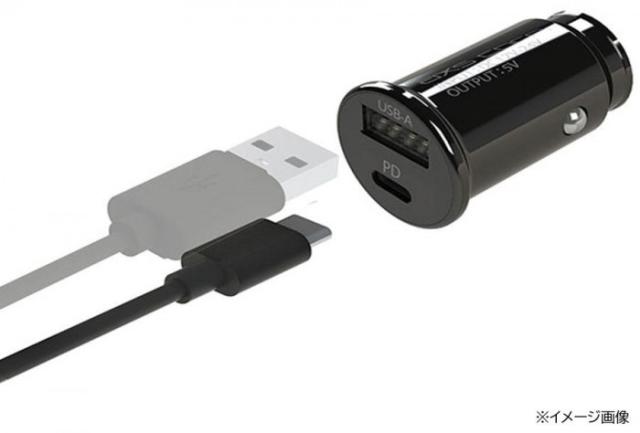 商品概要:アクセサリーソケットに収まるコンパクト車用充電器。