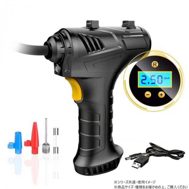 商品詳細:充電式エアーコンプレッサーです。 生産国:中国 素材・材質:ABS 商品サイズ:約幅14.2×奥行5.3×高さ20.5cm 重量:481g 仕様:保証期間:購入日から3ヶ月間 セット内容:本体、USBケーブル×1、アタッチメント×5、取扱説明書、保証書
