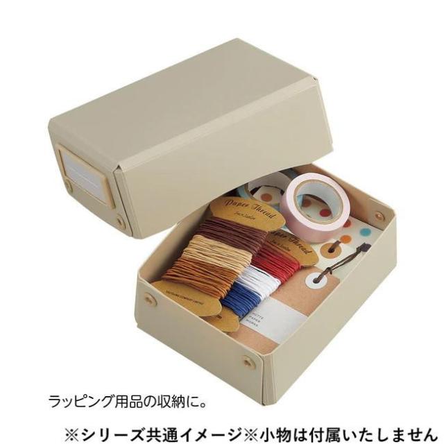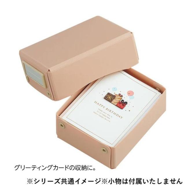 商品詳細:ホームユースに合ったカラーリングの収納アイテム。あなたの好き、が入れられる。グリーティングカードやラッピング用品、L判写真などの収納に。 生産国:ベトナム 素材・材質:本体:ポリプロピレンハトメ鋲:ポリカーボネート見出し:ABS樹脂見出しセル:PET見出し紙:上質紙 商品サイズ:118×161×56mm、内寸:幅107×奥行き136×高さ55mm 仕様:生地の厚さ(本体):1mm 付属品:スペア見出し紙