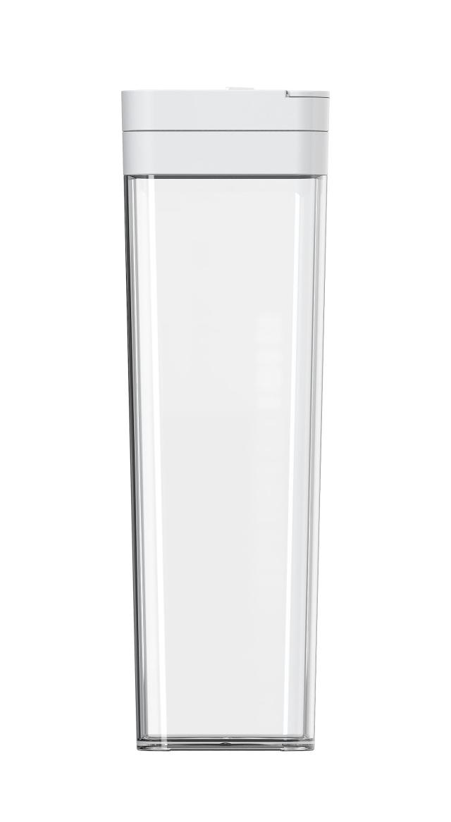 ワンプッシュオープン方式で手軽に注げる。冷蔵 庫で横置きしても水漏れしない。スタイリッシュで、卓上にも映えるスクエア冷水筒。