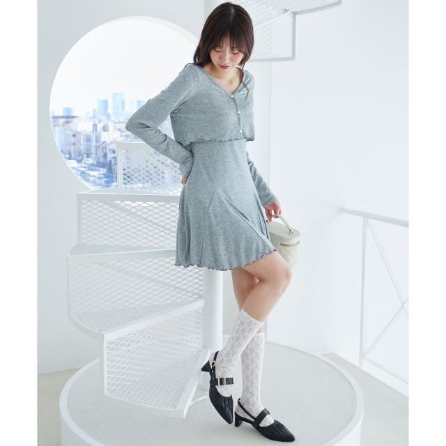 ■素材:[カーディガン]ポリエステル82% レーヨン13% ポリウレタン5% [ワンピース]表地/ポリエステル82% レーヨン13% ポリウレタン5% 裏地/ポリエステル100%