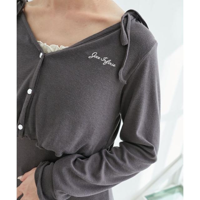 ぷっくり感があるかわいいボタンと胸元の刺繍がコーディネートのワンポイントになります。