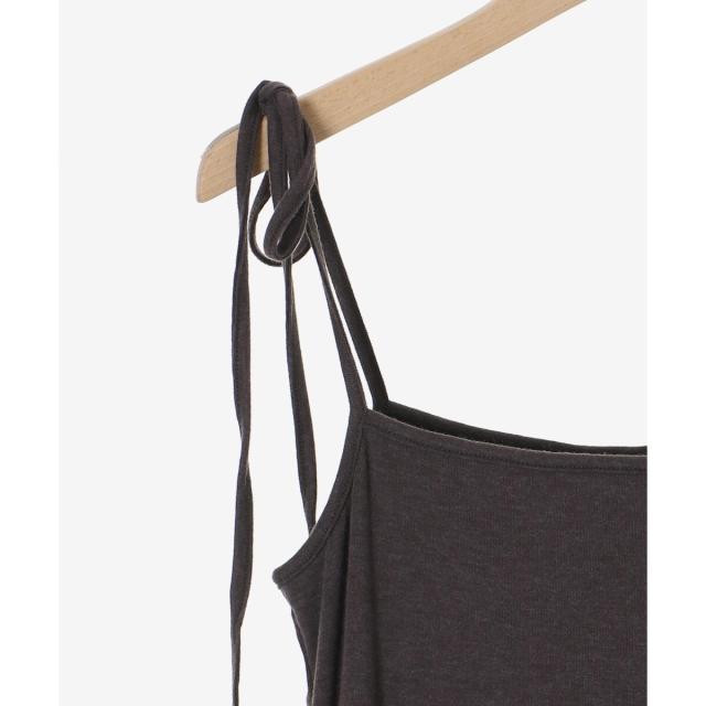 キャミソールワンピースの肩紐は結ぶ仕様となっており、身長に合わせて調整可能です。