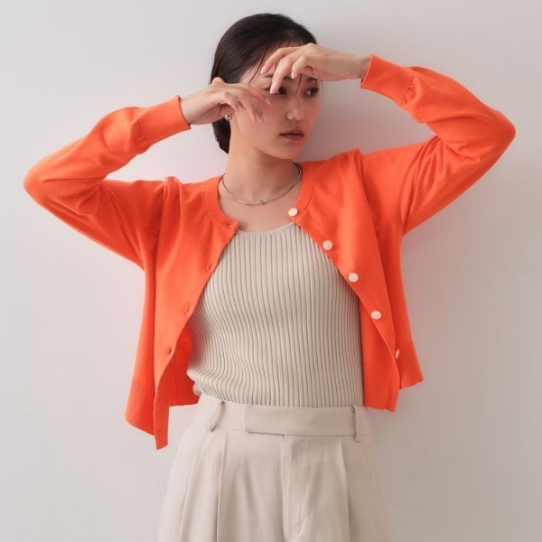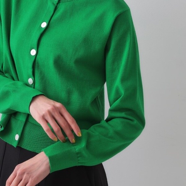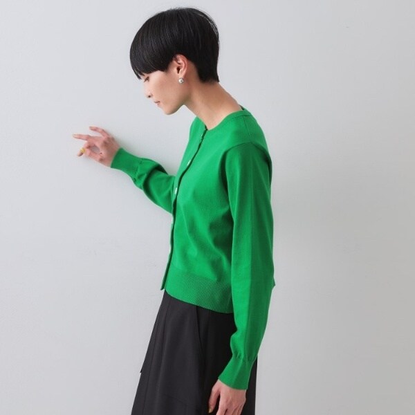 ・ややコンパクトな着丈で、パンツにはもちろんスカートやワンピースにも合わせやすいカーディガン