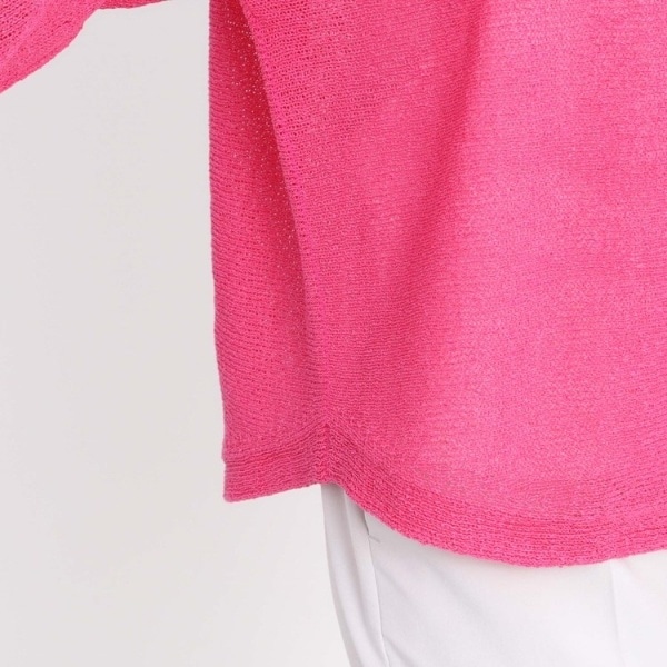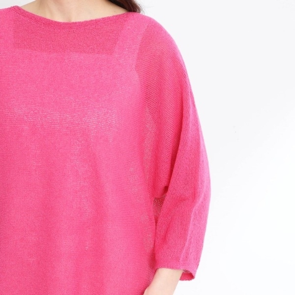 少し甘めの編地でレイヤードを楽しんでいただけるニットは、日除けにもなり夏まで着ていただけます。