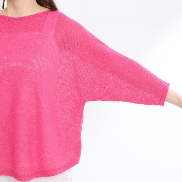 ホールガーメント(R)で編んだ横地使いのすっきりとしたプルオーバーニット。
