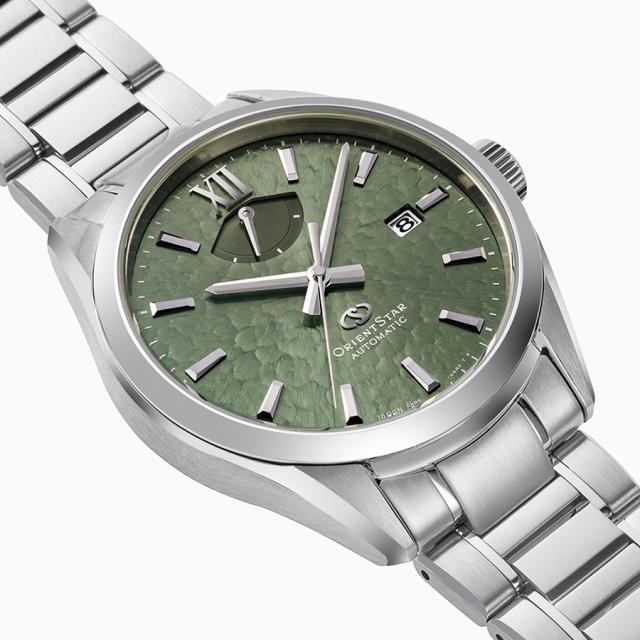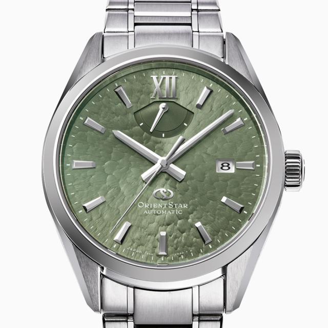 オリエントスターで最もバラエティに富んだラインアップを展開するコンテンポラリーコレクション「M34 F8 デイト」からグリーンの彩りで登場です。