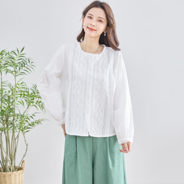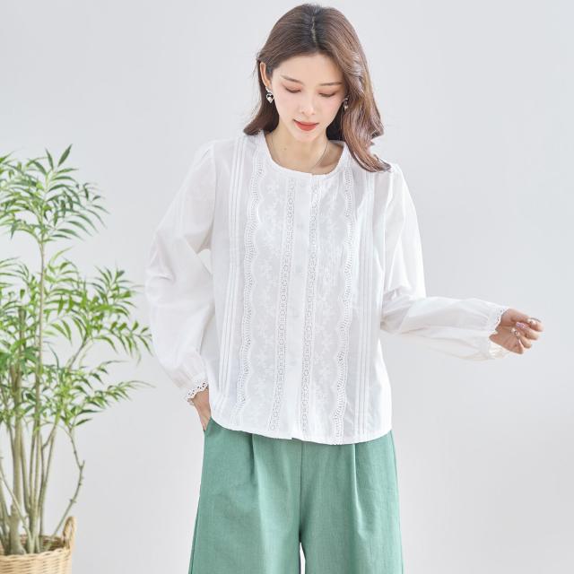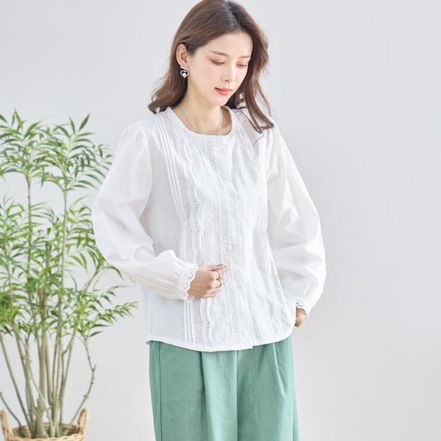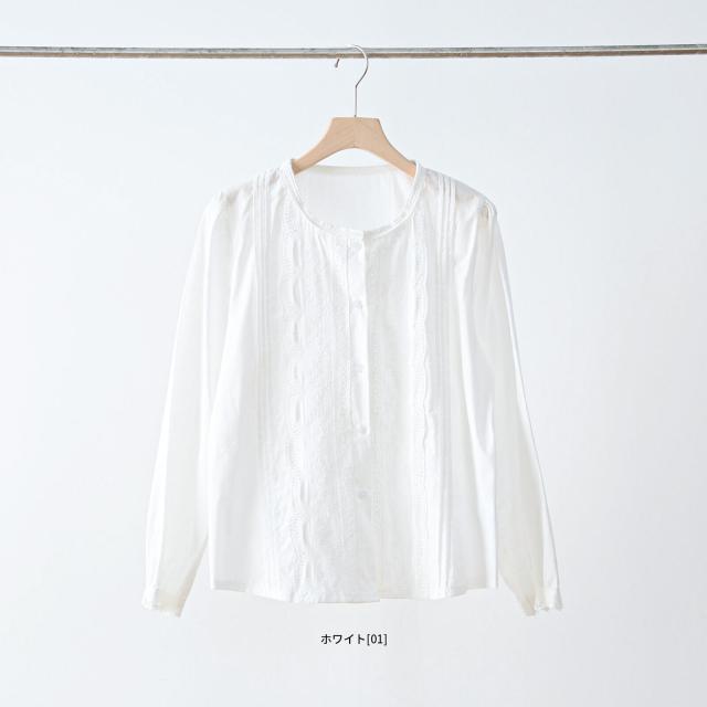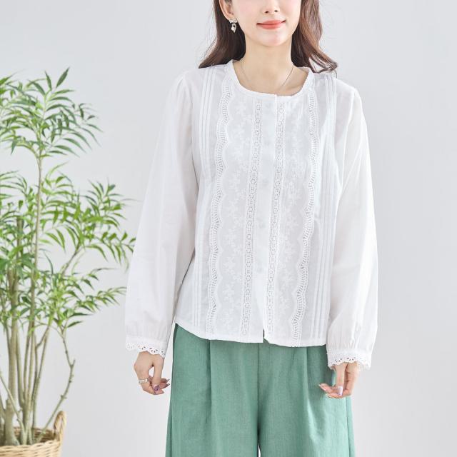 【即納】クラシックレースコットンブラウス トップス 羽織り 刺繍 花柄 綿100% ナチュラル シンプル きれいめ 長袖 春夏 新作