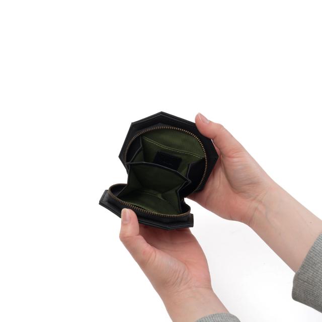 八角形のフォルムがかわいらしいマルチケースです。小銭入れやキーケースとしてお使いいただけます。