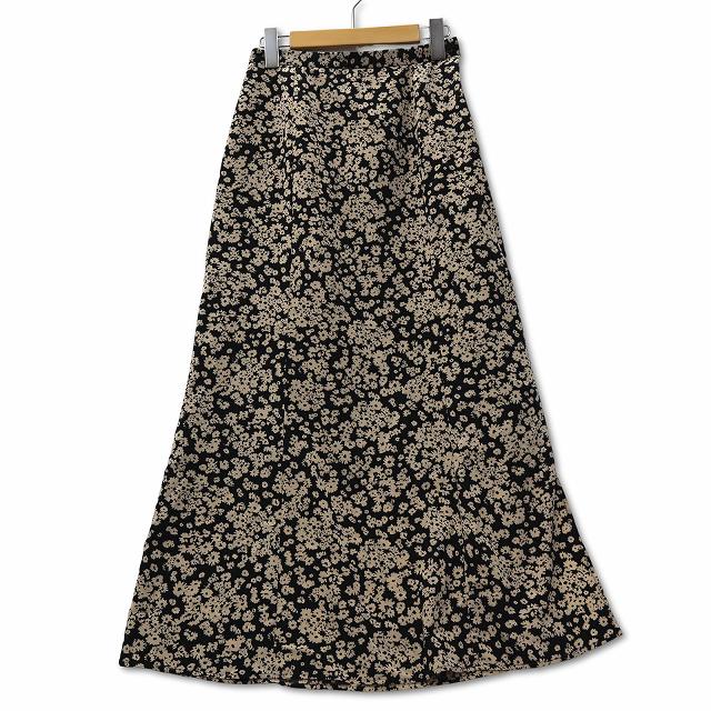 【中古】ドゥアルシーヴ DOUX ARCHIVES 小花 プリント 裾フレアー ロング スカート M ベージュ レディース