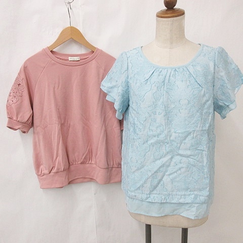 【中古】グローブ grove アースミュージック アンド エコロジー ブラウス カットソー 2枚 半袖 ブルー ピンク M F