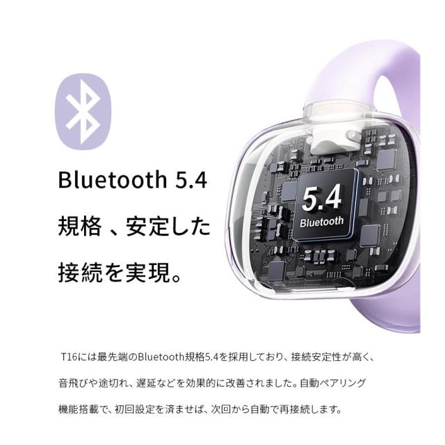 長時間の装着を考慮し、快適性を優先して設計で、イヤーカフのように、耳に挟むだけで耳を塞がなく使用できます。圧迫感がなく、長時間付けても快適です。