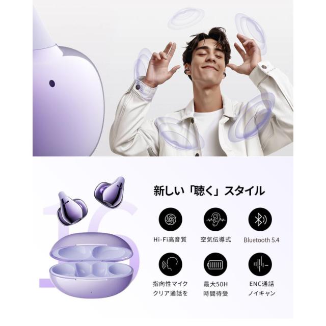 空気伝導イヤホン Bluetooth5.4 完全ワイヤレスイヤホン 最新モデル 耳に入れない ながら聴き ENC ノイズキャンセリング HiFi高音質 マイク内蔵 左右完全分離