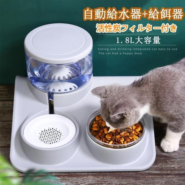 ペットボウル 猫食器 ペット食器 ペット自動給水器 猫用給水器 猫用 給餌器 食器 水飲み器 水入れ 餌入れ 犬用給水機 ペットフィーダーと自動給水一体型