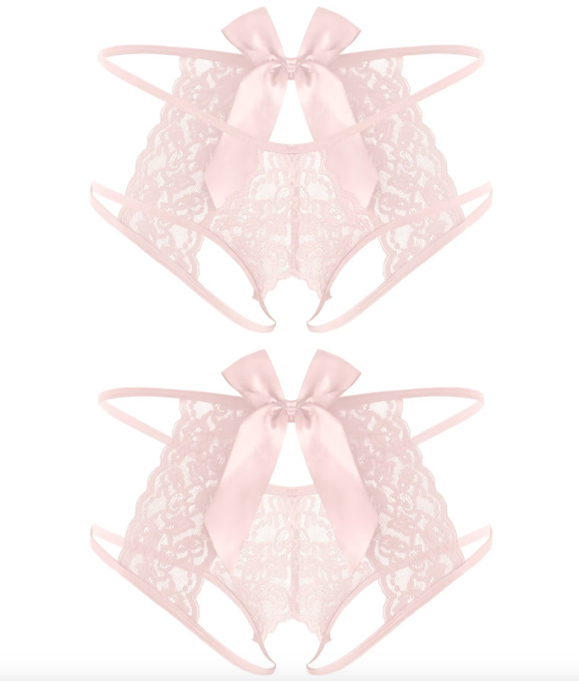 セクシー 2ライン リボン 見せパン ★ レディース ランジェリー レース パンティ パンツ ショーツ 紐パン 下着 ピンク M54-9