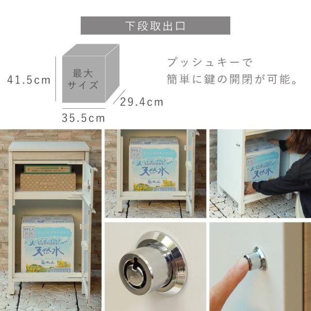 ■サイズ:本体/幅43.5×奥行35×高さ83cm(アジャスター込みサイズ)、上段投函口/幅38×高さ3.5cm、上段取出口/幅35.5×奥行31.4×高さ15.4cm、下段取出口/幅35.5×奥行29.4×高さ41.5cm