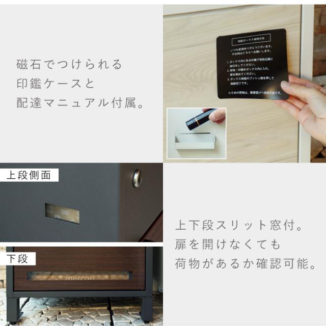 キーフック付き印鑑ケースと宅配業者用のマニュアルが付属しており(マグネット付きでお好きな場所に貼り付け可)、宅配ボックスとして、すぐにご使用いただけます。