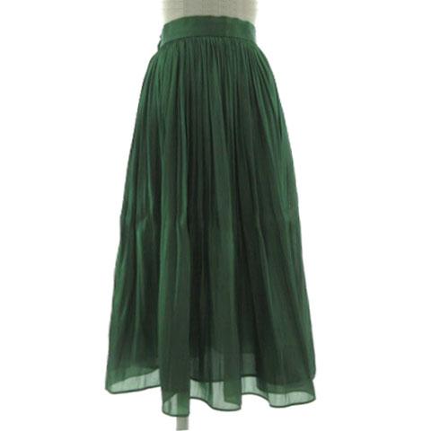 【中古】リヴドロワ RIVE DROITE サテンギャザースカート イージー マキシ ロング M-8777 シャイニー 緑 0