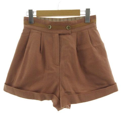 【中古】ロイスクレヨン Lois CRAYON ショートパンツ タック 裾ダブル バックリボン 日本製 起毛 ウール ブラウン系 M
