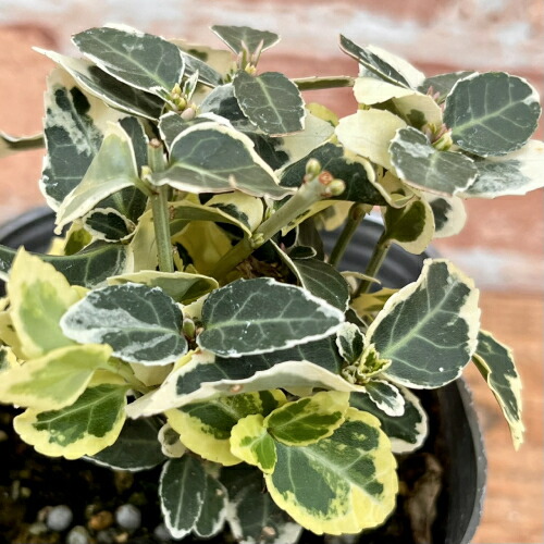 白斑の葉がつる状に伸びて、寄せ植えのアクセントになります。