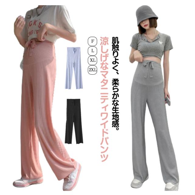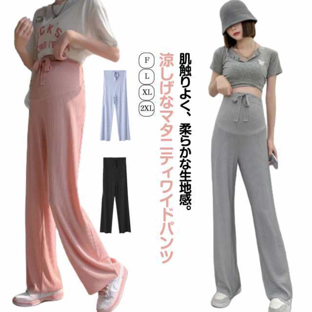 マタニティ ワイドパンツ 妊婦服 接触冷感 産前 産後 リブ マタニティパンツ 薄手 冷感パンツ 春夏 夏 ロングパンツ マタニティウェア ズボン ボトム 伸縮性 リラックス ストレートパンツ 妊婦 妊娠 ルームウェア リブ ストレッチ 送料無料