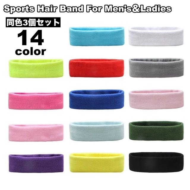 男女問わず使えるスポーツ用ヘアバンド、同色3個セット。