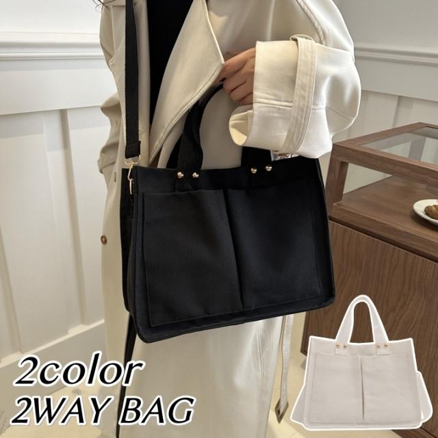 ショルダーバッグ トートバッグ ハンドバッグ 2WAY 無地 レディース 女性用 鞄 カバン 肩掛け 手提げ 斜めがけ キャンバ