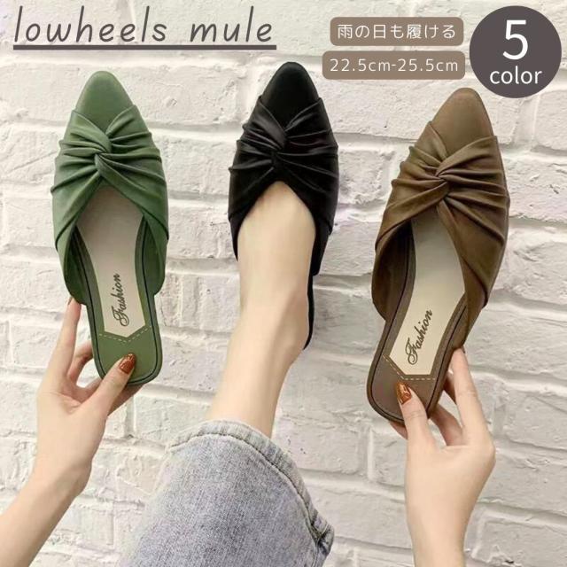 ミュール レディース 靴 シューズ ポインテッドトゥ チャンキーヒール 太ヒール ローヒール 無地 結び目 ツイスト おしゃれ
