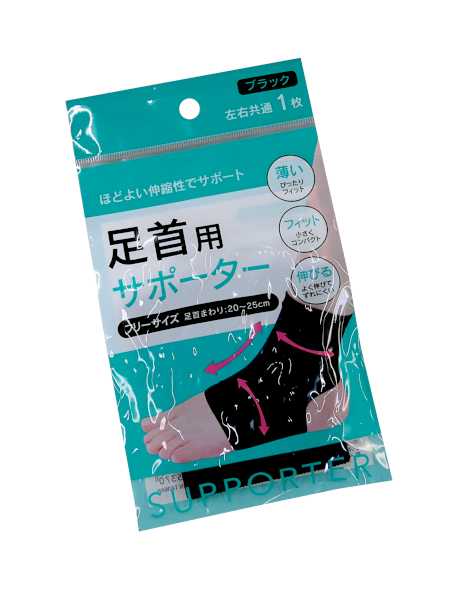 足首用サポーター 左右共通フリーサイズ ブラック (100円ショップ 100円均一 100均一 100均)