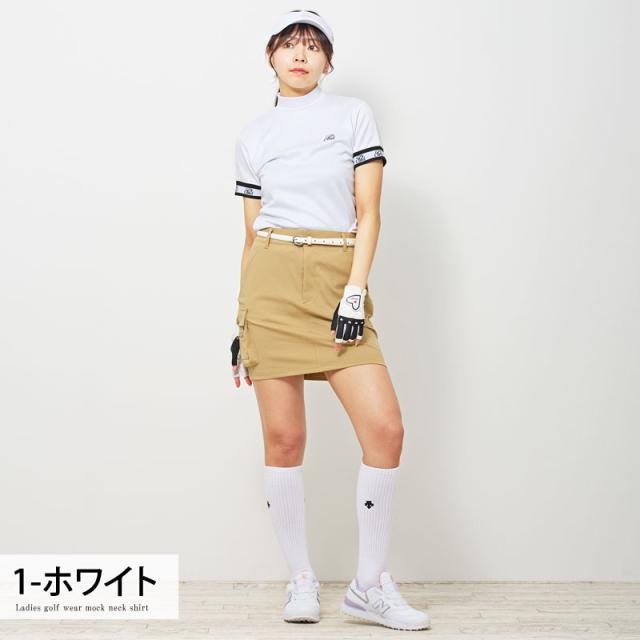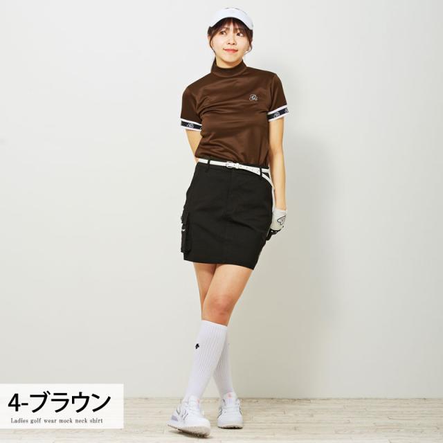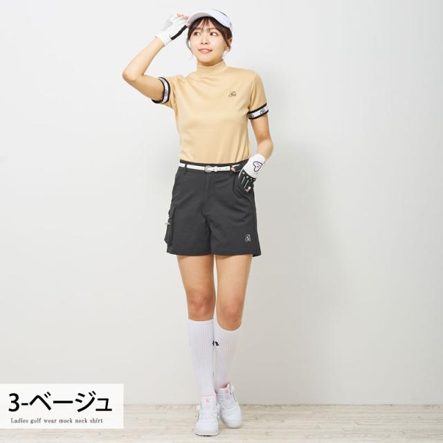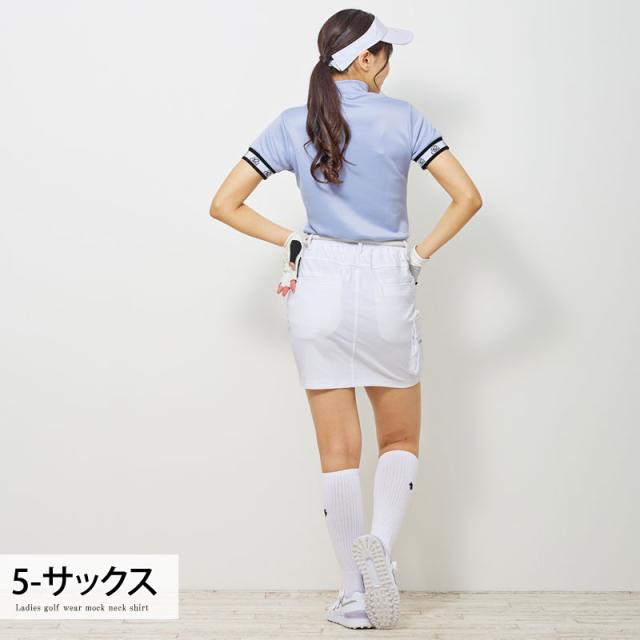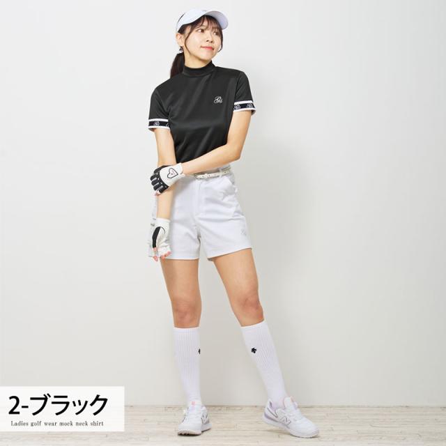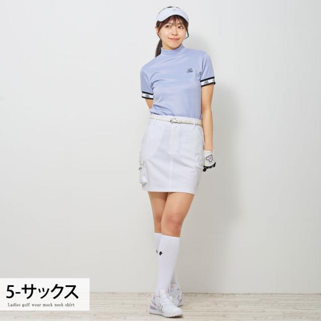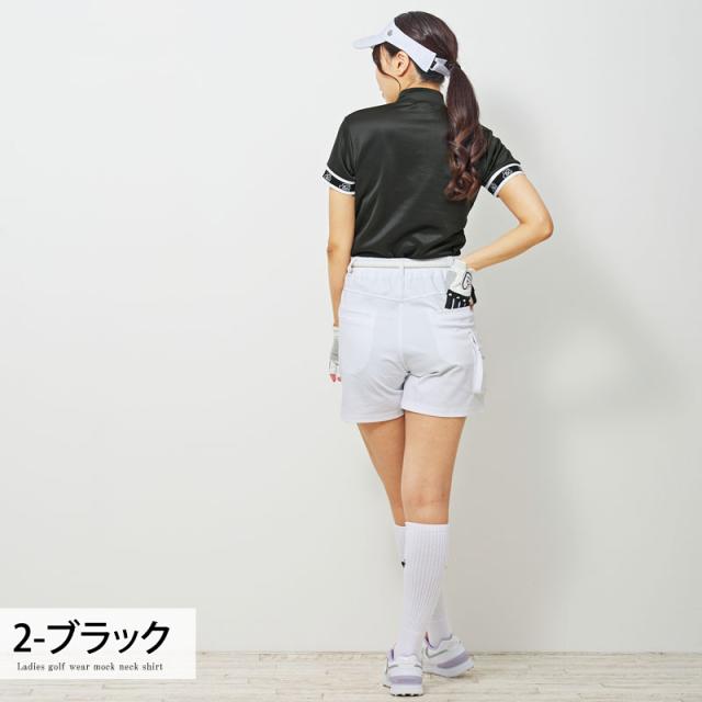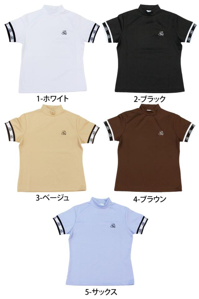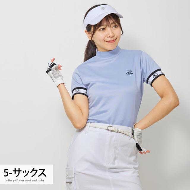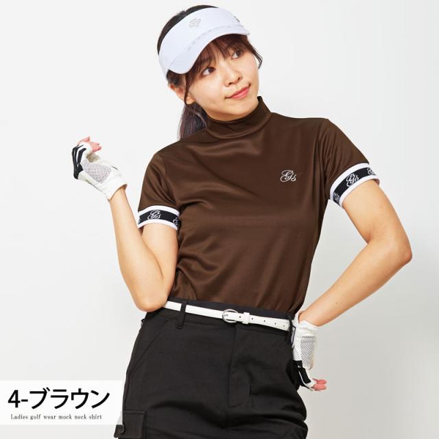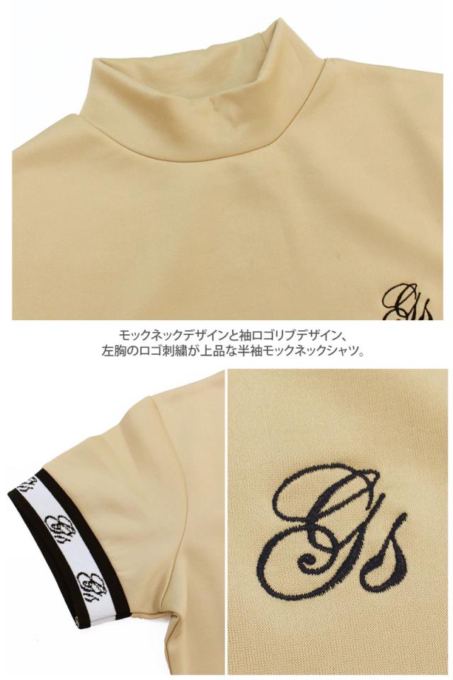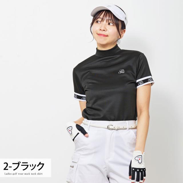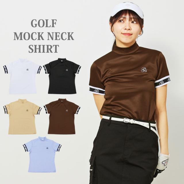 送料無料 ゴルフウェア レディース モックネック gs GOLF ポロシャツ ハイネック 半袖 ストレッチ 袖ロゴリブ トップス 刺繍 無地 おしゃれ かわいい 韓国系 春夏 ゆうパケ