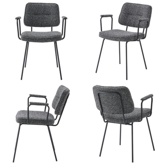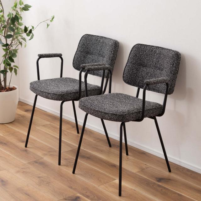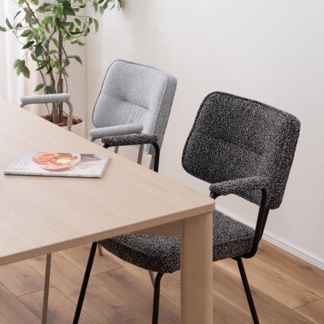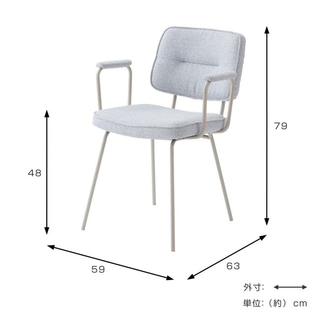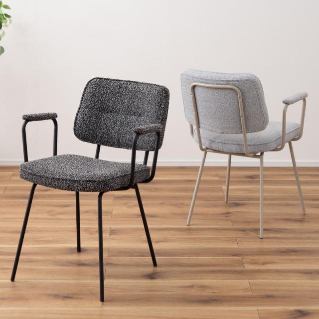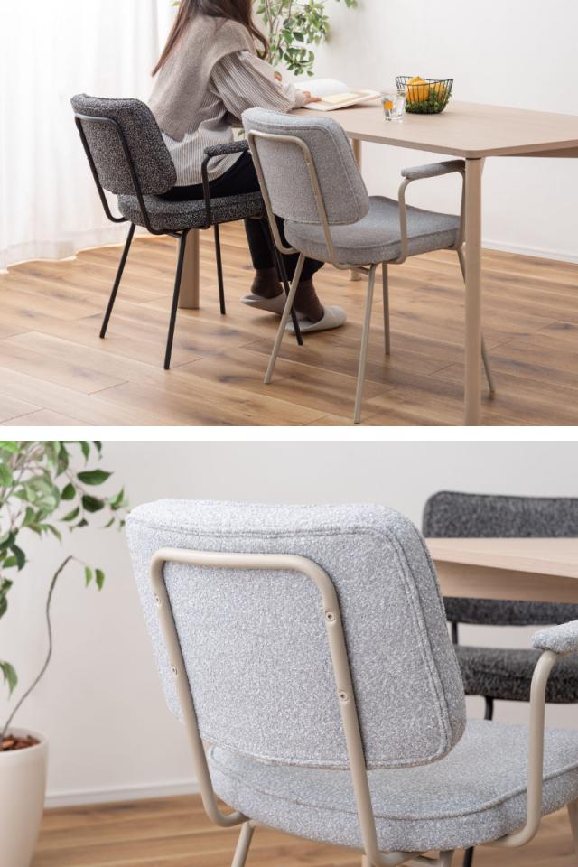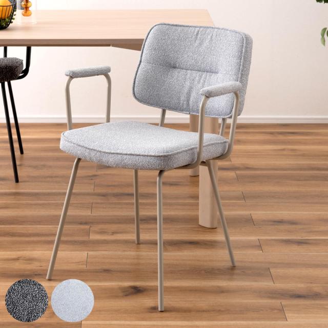 ダイニングチェア 座面高48cm アームチェア ブークレ生地 ( 食卓 ダイニング 食卓椅子 チェアー チェア 椅子 いす イス 肘付き 肘掛 ひじ掛け ふんわり 簡単組立 ファブリック 布 おしゃれ シンプル スチール モダン デスクチェア )