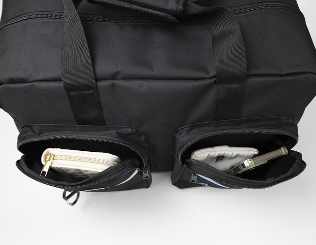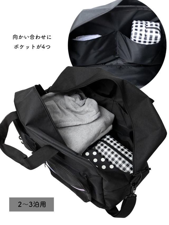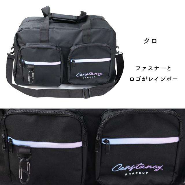 ■撥水加工を施した黒の本体にグラデーションのロゴやファスナーをあしらった約45L 2〜3泊程度サイズのボストンバッグです。Sカラビナ付きで可愛くチャームなどを付けることができます。 ■前面や内部にポケットが計8個配置されているので、小物をすっきり収納することができます。 ■ショルダーベルト付きの2WAYで 小学校 中学校の修学旅行や合宿にお勧めです。 |