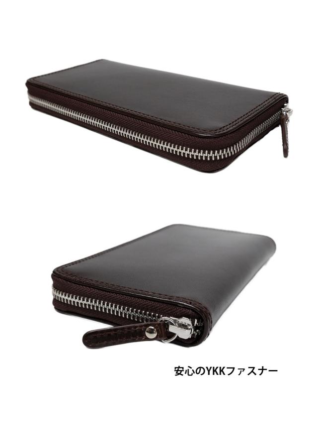 ■美しい質感のイタリアンレザーを使ったラウンドファスナー長財布です。無印で革の美しさが引き立ちます。安心のYKKファスナーを使用しています。