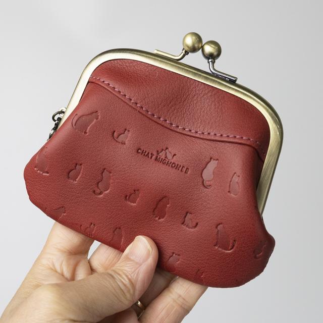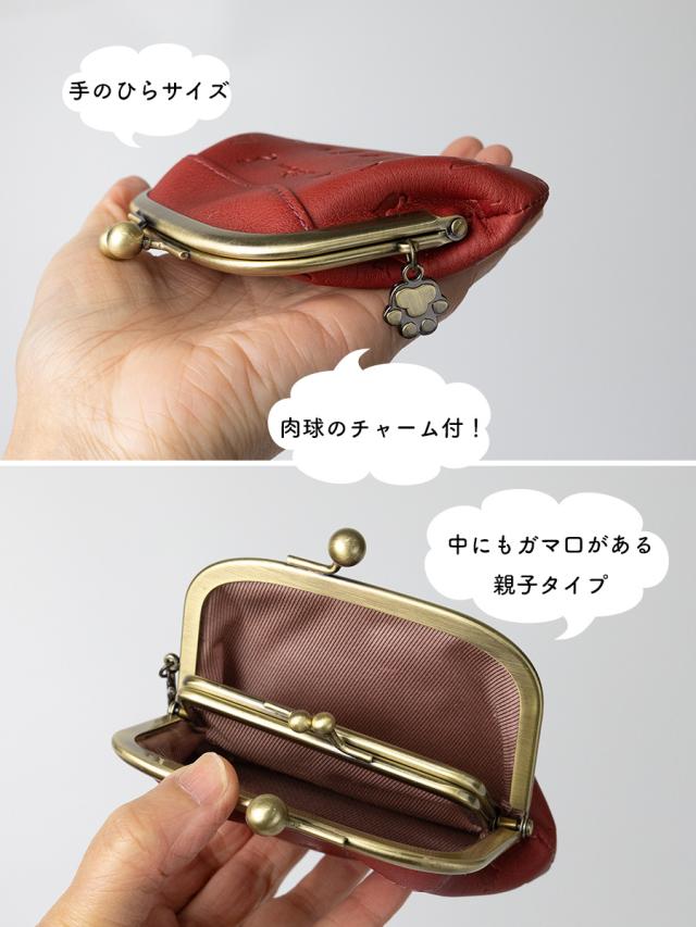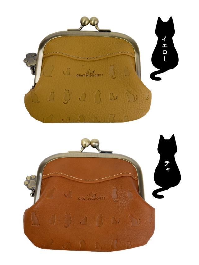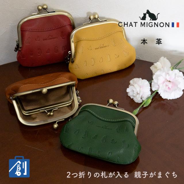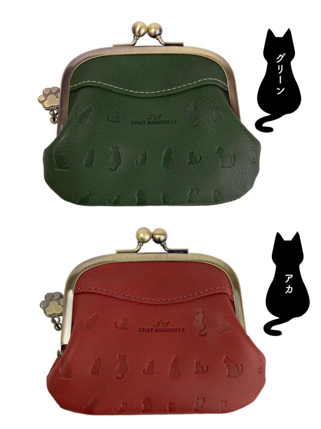 財布 レディース がま口 本革 革 レザー 猫 ねこ 型押し ブランド がまぐち 財布 小銭入れ 親子がま口 ウォレット さいふ おしゃれ 可愛い かわいい 赤 黄色 緑 茶 レッド ブラウン CHAT MIGNON シャーミニヨン CM0007