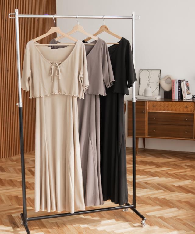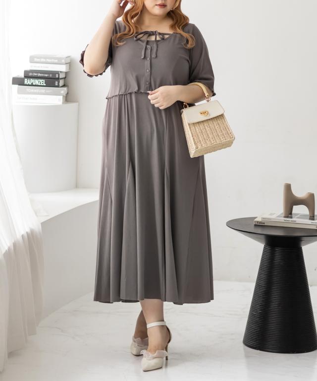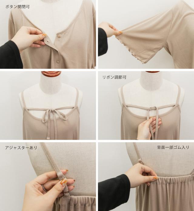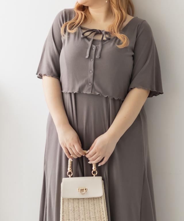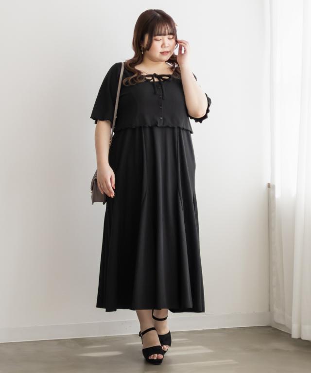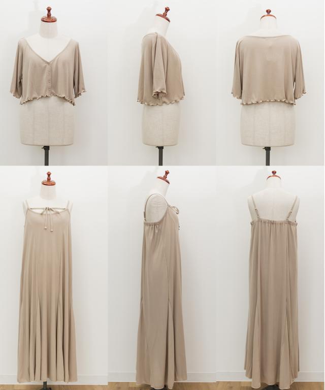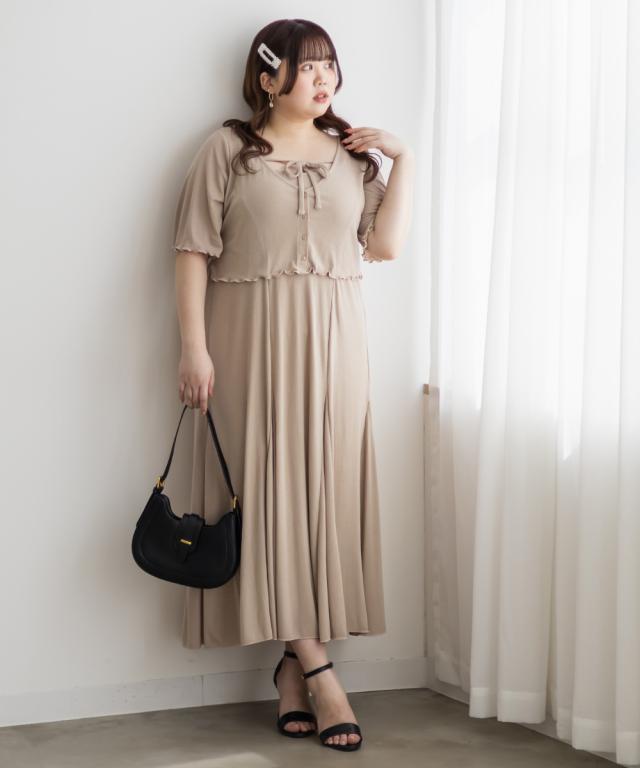 | 3Lサイズを着用して、全体的にちょうどいいサイズ感でした◎とてもやわらかい風合いのリブカットソー生地なので着心地が抜群です!キャミワンピースは後ろゴム仕様で楽ちん♪ スカート部分は裾に向かって綺麗に広がるフレア感がしっかりあって、動くたびにふんわり揺れるシルエットが可愛いです!肩紐は調節可能なので、好みのバランスに合わせられるのも嬉しいポイント。ボレロカーディガンは二の腕がピタッとしすぎないサイズ感だったので、安心して着られました。胸元の華奢なリボンもメリハリがありポイントになって可愛いです◎セットでも別々でも着回しできるから、コーデの幅がぐっと広がるアイテムです♪ |