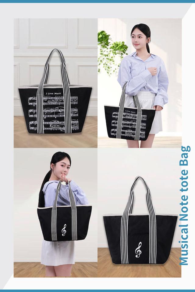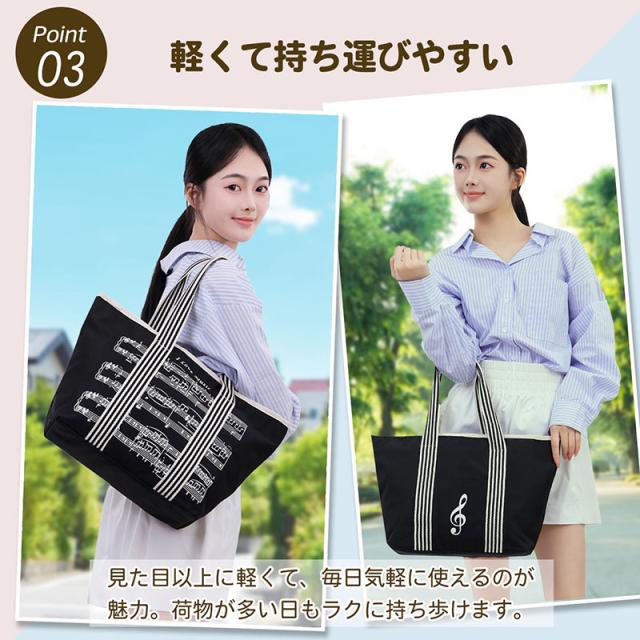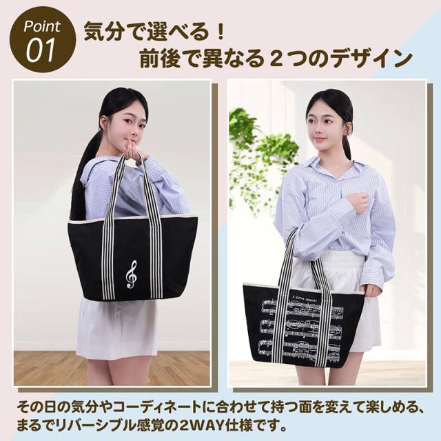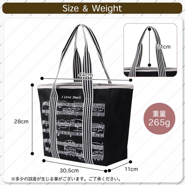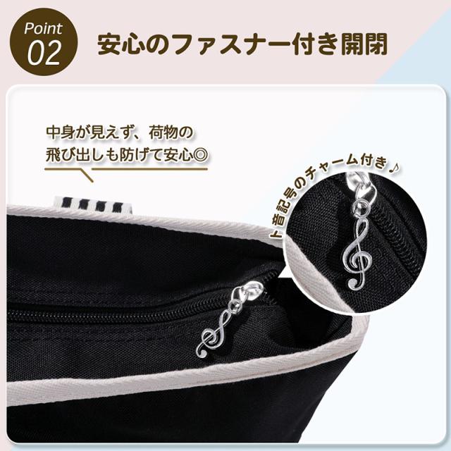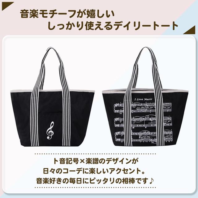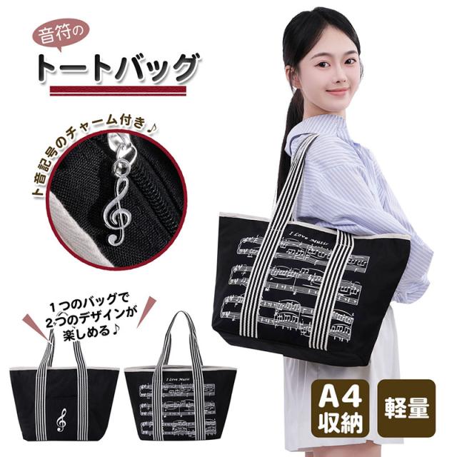 音符の トートバッグ トート 音楽モチーフ ト音記号 チャーム付き 楽譜 ファスナー付き 習い事 レッスンバッグ 軽量 可愛い A4サイズ対応 送料無料