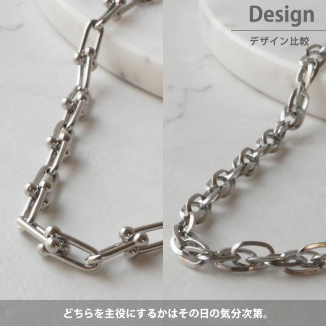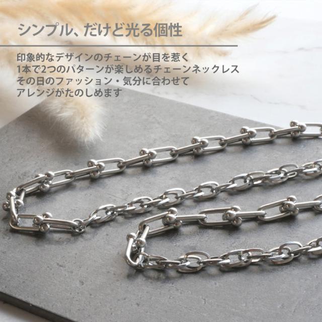 印象的なデザインのチェーンが目を惹く1本で2つのパターンが楽しめるネックレス。