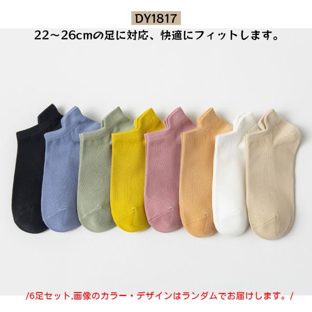 靴下 ソックス アンクルソックス レディース 6足セット 22-26cm 防臭 抗菌 柔らかい 通気性 無地 可愛い 女性靴下 くつした 室内 DY1817
