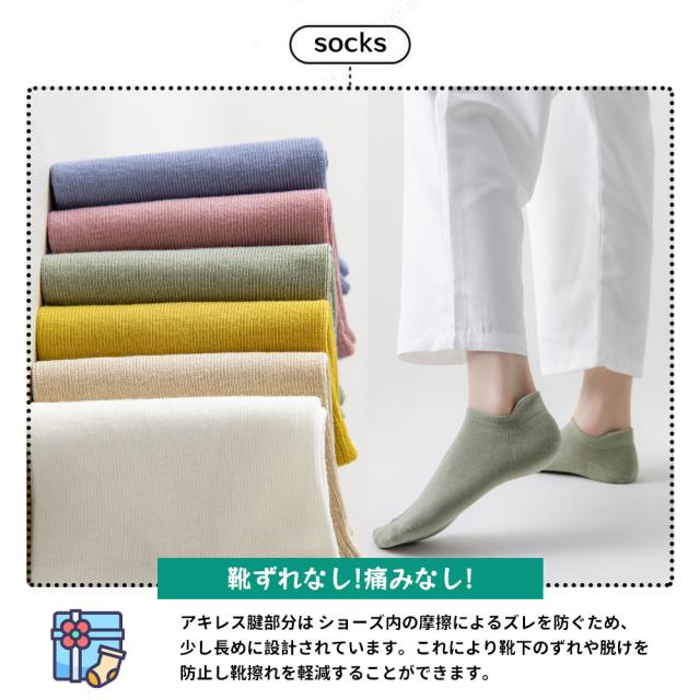 【6足セット】お得な6足セット。生地は肌触りが良く、上品な見た目で、日差しや洗濯にも強く、色あせしにくい仕様です。今年のトレンドにぴったりの靴下で、毎日選ぶ楽しさを味わえます。【見えにくく快適】浅履きシューズを履いても靴下の縁が見えにくい、超浅口デザイン。素足のような感覚で着用でき、靴との直接接触を防ぎます。目立たずに履きたい女性に最適で、ほとんどのシューズに対応し、足元をきれいに見せてくれます。【伸縮性フィット】コットンシルク混紡素材で作られており、柔らかく快適な履き心地。長時間履いても締め付け感がなく、緩みにくく、型崩れしにくい仕様です。かかと部分にはしっかりとしたシリコングリップがあり、動いてもズレにくく、足と靴の間で滑るのを防ぎ、快適なフィット感を実現。バレエシューズやフラットシューズにも最適で、着脱も簡単です。