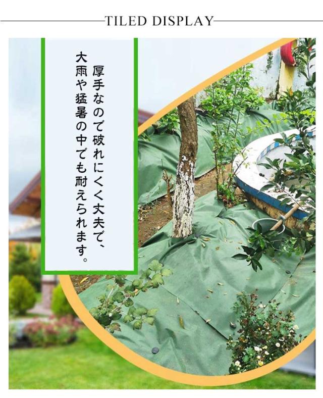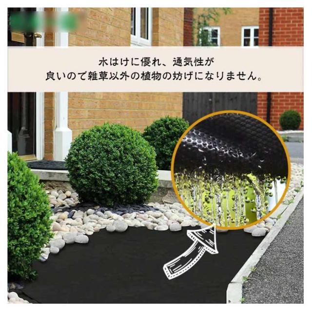 | 抜群な遮光・優れた雑草防止効果!人工芝下、砂利の下用防草シートです。 厚手なので破れにくく丈夫で、大雨や猛暑の中でも耐えられます。 水はけに優れ、通気性が良いので雑草以外の植物の妨げになりません。 用途に応じて自由にDIYカットしてもほつれなく、切断面も綺麗で処理不要です。 固定ピン付きなので、より簡単に設置することもできます。 敷くだけでOK!除草剤を使う必要もなく、雑草を除去するのに作業時間が短縮されます。 土壌の湿度を維持し、地温を向上させ、園芸に最適です。 | |