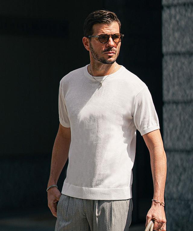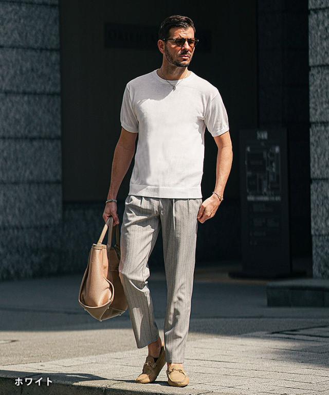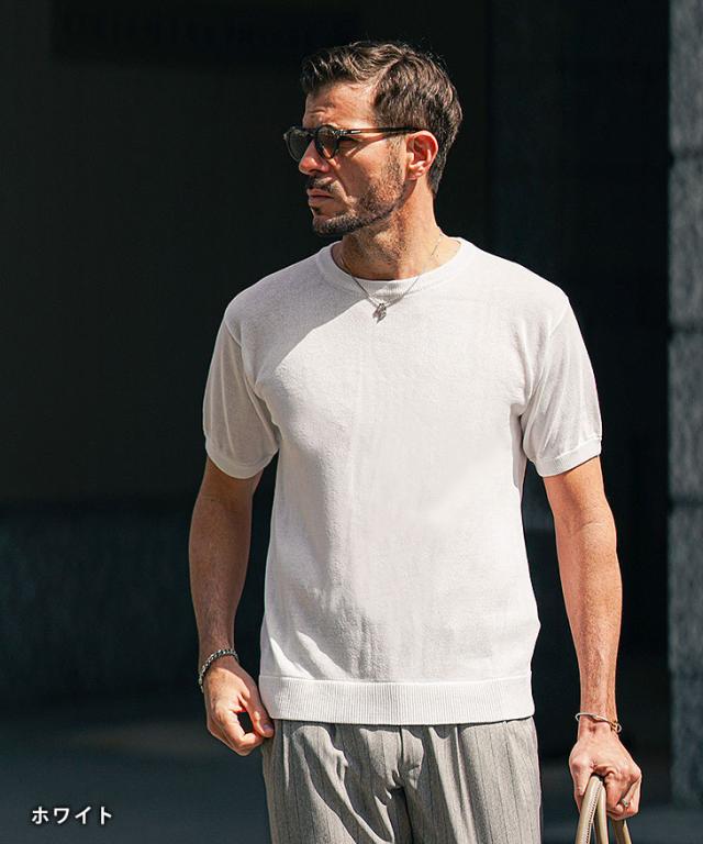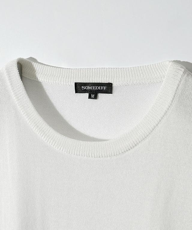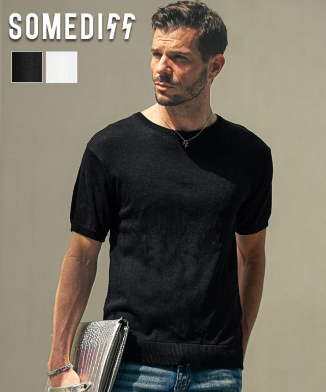 SOMEDIFF(サムディフ)『天竺編み半袖無地サマーニット』【天竺編み半袖無地サマーニット】■Design/デザイン春夏に重宝する、オトナの洒落トップス半袖サマーニット。薄手の素材感で織りなされたサマーニットは春夏を品よく着こなせるアイテム。シンプルな無地のアイテムだからこそ、どんなコーデにも馴染んでくれる逸品に。コーデの引き出しを増やしてくれるサマーニットで余裕綽々に夏を着こなす。