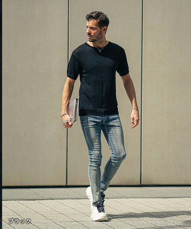 サマーニット メンズ セーター 半袖 ニット メンズ 長袖ニット 無地 クルーネック ニット レーヨン混 おしゃれ ブランド 白 黒 ブラック ホワイト LL XL リゾート 爽やか シアー 夏 夏服 夏物 春夏 春夏 メンズファッション リゾート お兄系 ちょいワル 新作 夏新作