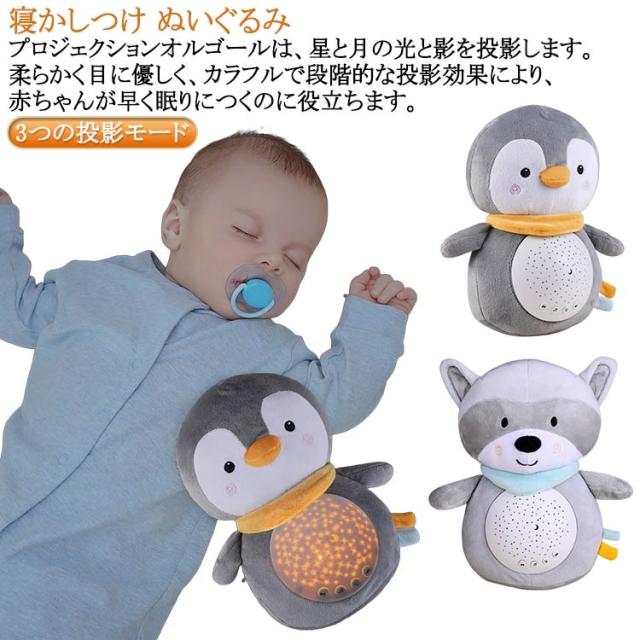 出産祝い 赤ちゃん 寝かしつけ グッズ ぬいぐるみ ペンギン ラクーン 音楽 オルゴール プロジェクターランプ 内祝い 電池配属なし 誕生日プレゼント 子供 おもちゃ 0歳 1歳 2歳 3歳 幼児 幼児用 赤ちゃん グッズ 男の子 女の子
