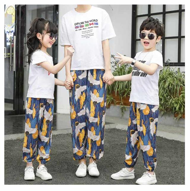 ジョガーパンツ キッズ ベビー 大人 女の子 男の子 レディース ロングパンツ ゾウ柄 総柄 花柄 可愛い おしゃれ サルエルパンツ 夏 薄手 ルームパンツ 部屋着 タイパンツ 長ズボン ビーチパンツ ウエストゴム 裾ゴム ボトムス